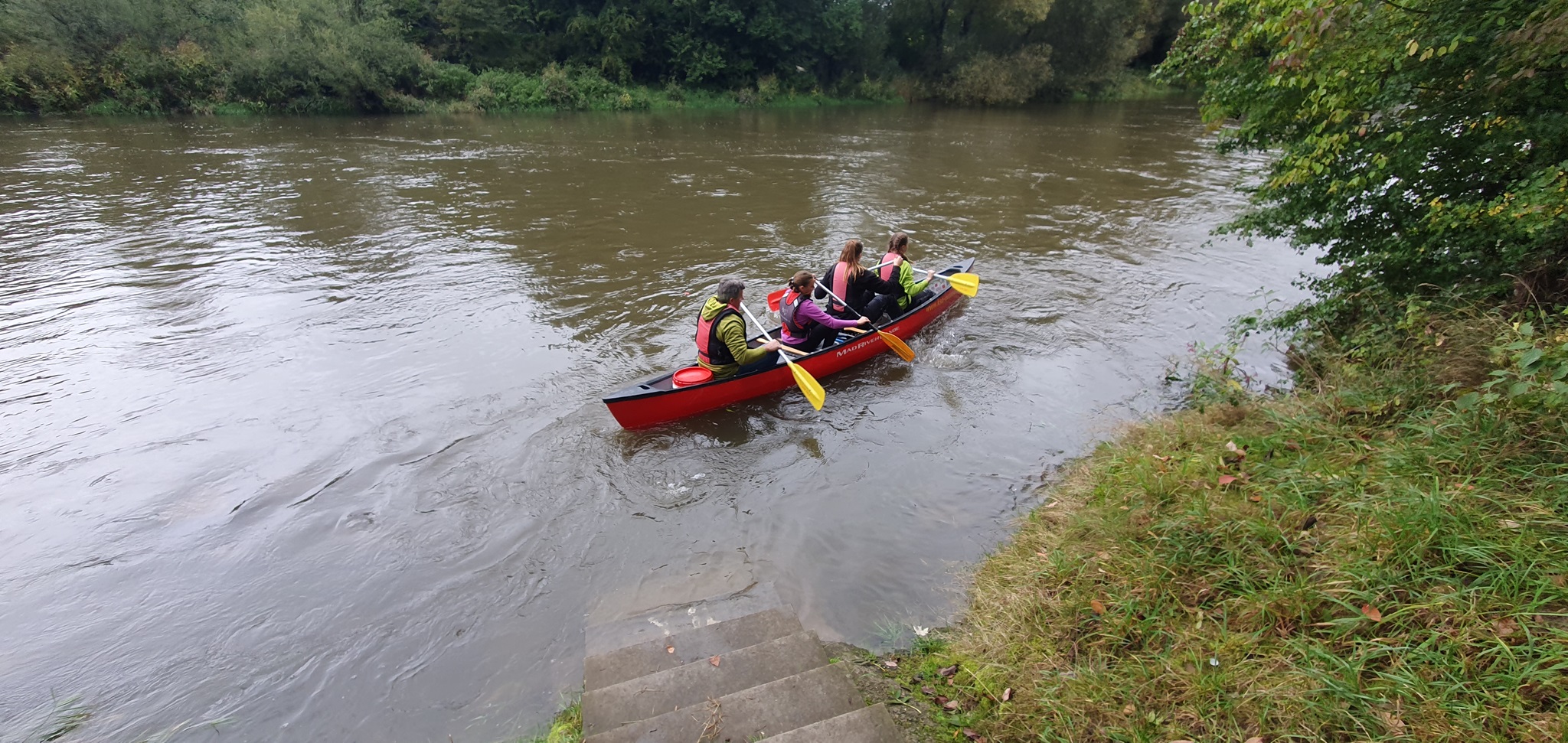Am nächsten Morgen lockte Kaffeeduft und der Geruch frisch gebackener Brötchen auch die Langschläfer aus den Betten. Nach dem Frühstück stand das Highlight an: eine Kanutour auf der Donau. Pünktlich zum Start hörte sogar das Nieseln auf. Teams wurden gebildet, Boote verteilt – und los ging’s!