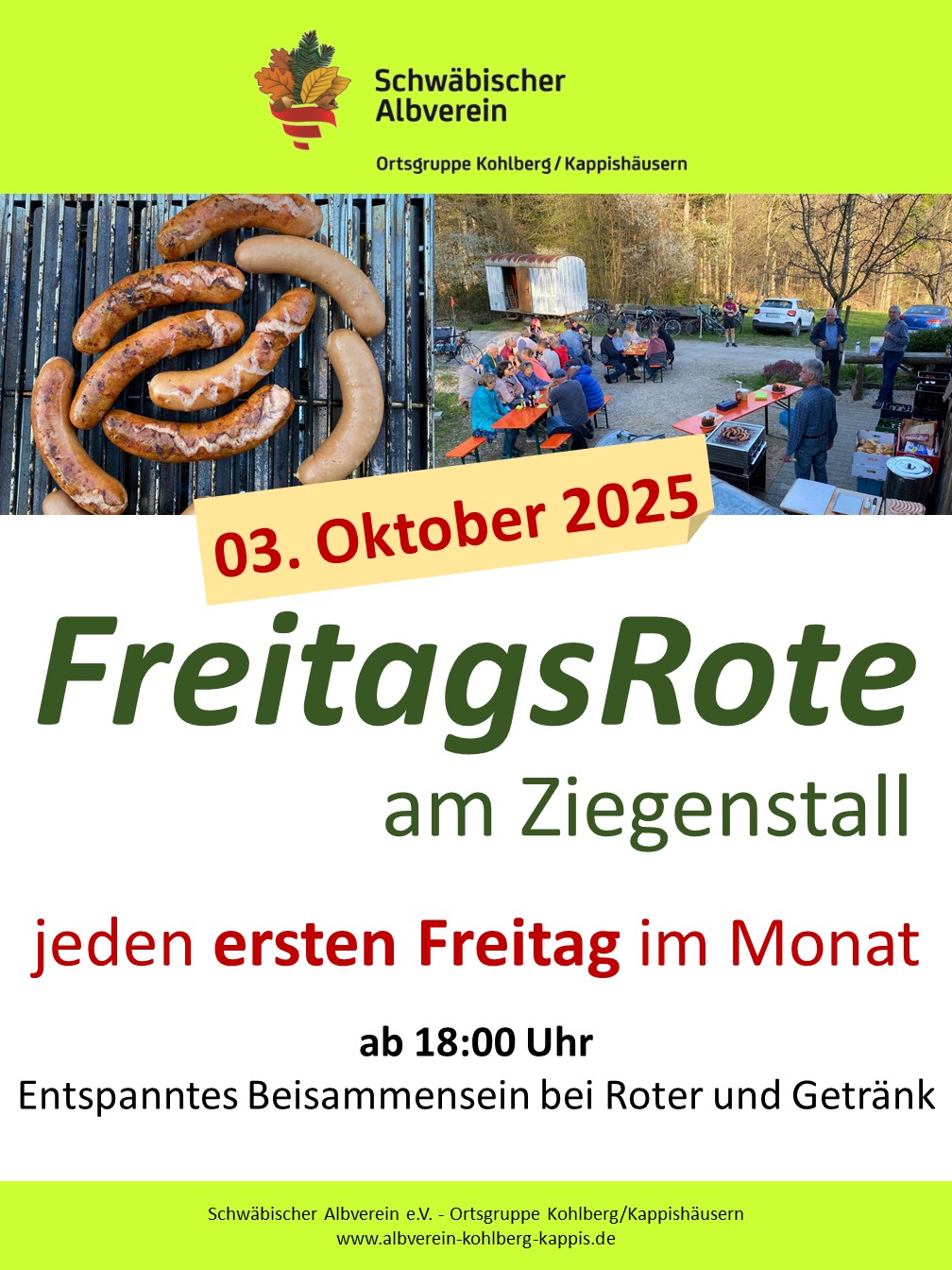 Auch am kommenden Freitag, dem 03.10.2025 findet die "Freitagsrote" statt. Es gibt eigentlich keinen schöneren Anlass als den Tag der Deutschen Einheit, um sich am Ziegenstall zur Freitagsroten zu treffen.