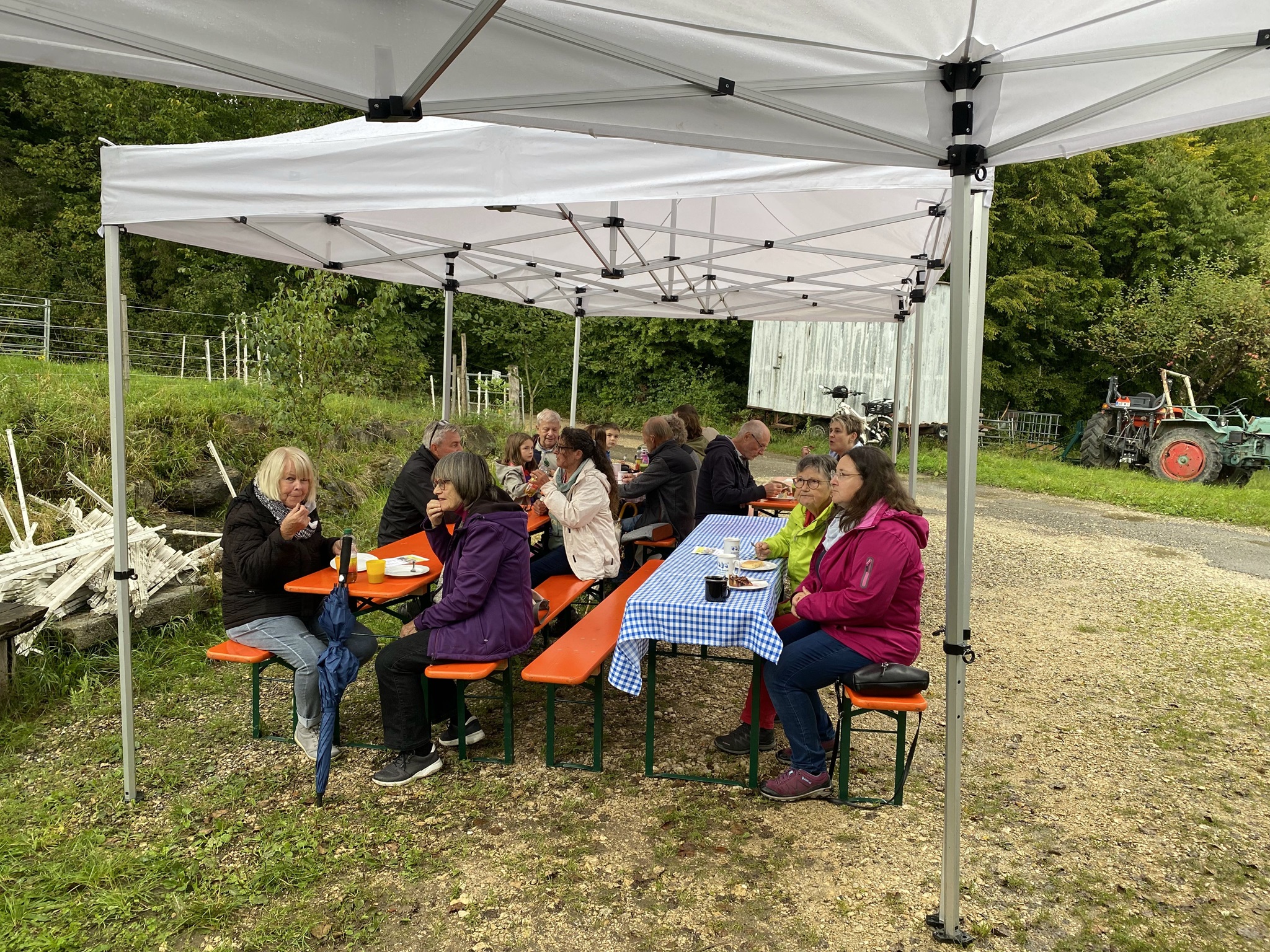 Am vergangenen Sonntag fand unser traditionelles Stallcafé am Ziegenstall bei Florian statt. Pünktlich zum Start öffnete der Himmel seine Schleusen und ein kräftiger Regenschauer ging nieder.