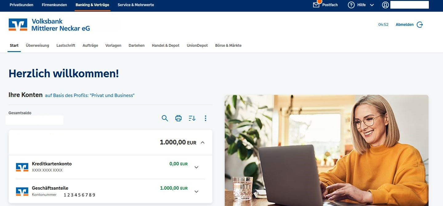 Diese Mitgliedsnummer ( Kontonummer des Geschäftsanteils) steht bspw. beim Onlinezugang Kontoübersicht aufgeführt. Die Nummer ist 9-stellig!