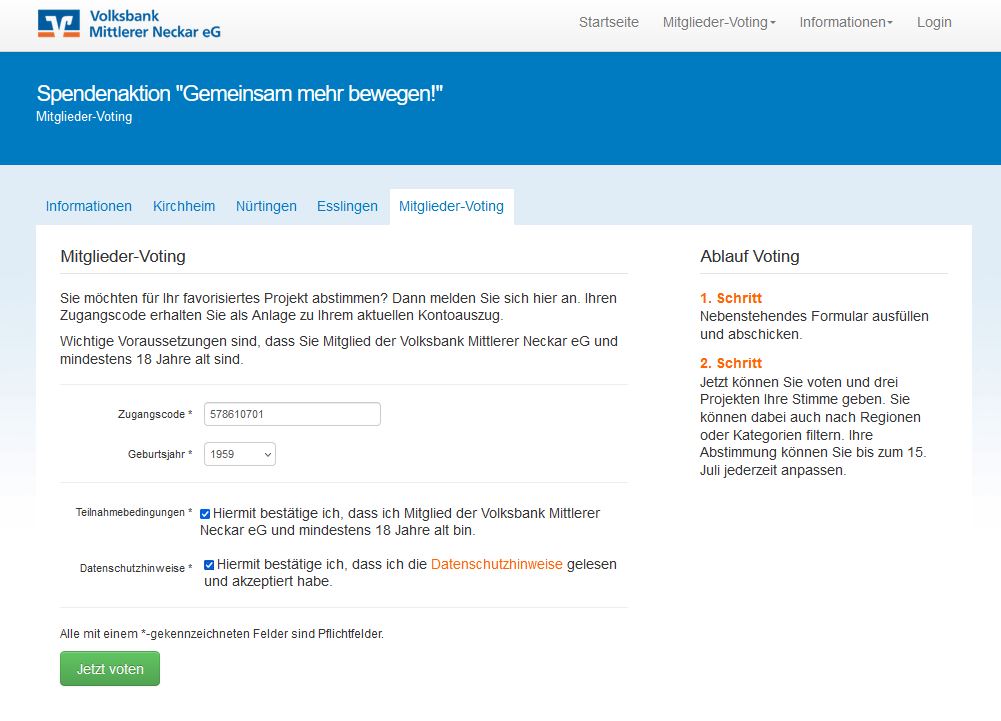 Wichtigste Zugangsvoraussetzung: Mitglied sein bei der Volksbank, d.h. man muss Geschäftsanteile besitzen.