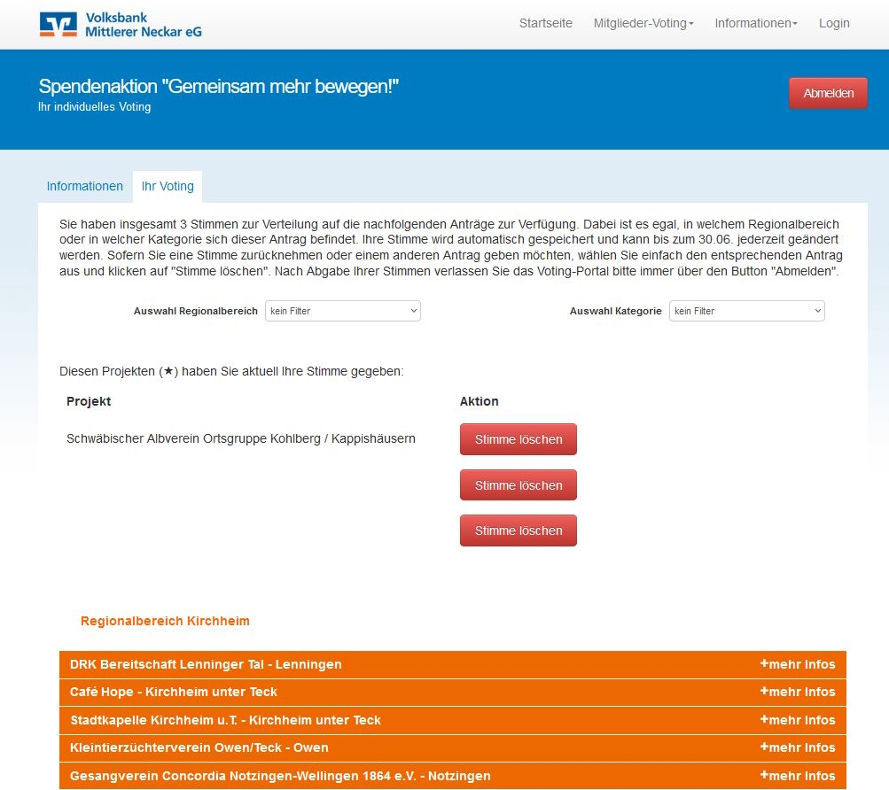 unser Projekt auswählen und dafür die Stimme abgeben!