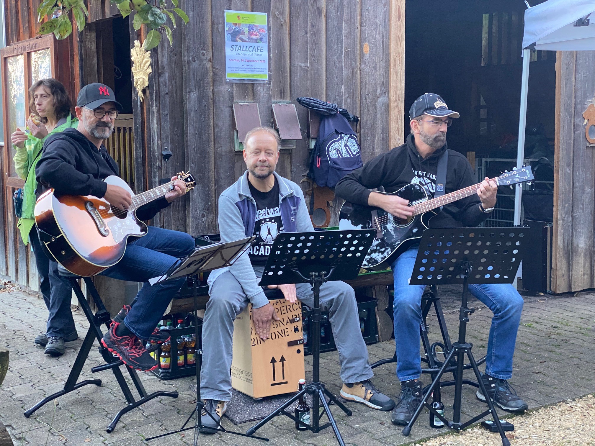 Der erste Freitag im Monat: Zeit, an den Ziegenstall am Florian zu kommen und in geselliger Runde eine Rote zu genießen. Doch diesmal gab´s eine unangekündigte Überraschung. Die Band „AcousticBox“ hatte ihre Probe kurzerhand an den Stall verlegt. Die drei Musiker bogen plötzlich mit Ihren Instrumenten um´s Eck.